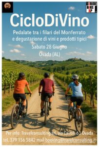 Partiremo dal centro di Ovada per un tour con guida cicloturistica MTB certificata della durata di tre ore. Il percorso si snoda su strade asfaltate poco trafficate e sterrati panoramici, attraversando borghi storici, castelli e vigneti che cambiano colore con le stagioni. Percorreremo dolci saliscendi nella zone di produzione del vino OVADA DOCG, con viste mozzafiato con le Alpi sullo sfondo. All’arrivo scopriremo il gusto del Monferrato assaporando vini e prodotti tipici del territorio presso una esclusiva enoteca regionale. Una esperienza perfetta per chi vuole combinare vita all’aria aperta, cultura e gusto. Il Tour è adatto a ciclisti con un minimo di allenamento e può essere percorso con bici gravel, MTB o e-bike